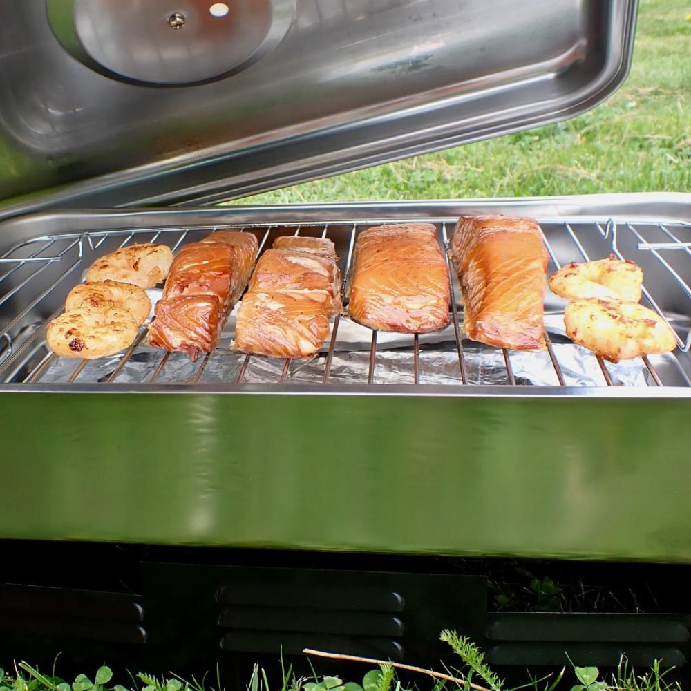 A huge favourite amongst hundreds of troutcatcher customers for years with 5 Star Reviews - Ideal for anglers, campers, and food lovers, this best-selling stainless-steel smoker is compact, portable, and delivers authentic smoked results in minutes.