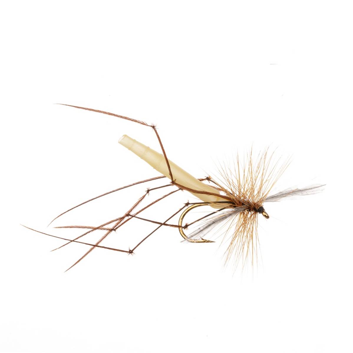 The Detached Body Daddy Long Legs fly imitates the adult stage of the crane fly, commonly known as the daddy long legs. This fly is particularly effective during late summer and early autumn when these insects are abundant. The fly's design, with its long, slender legs and buoyant body, mimics the crane fly's distinctive appearance and erratic movement on the water's surface.