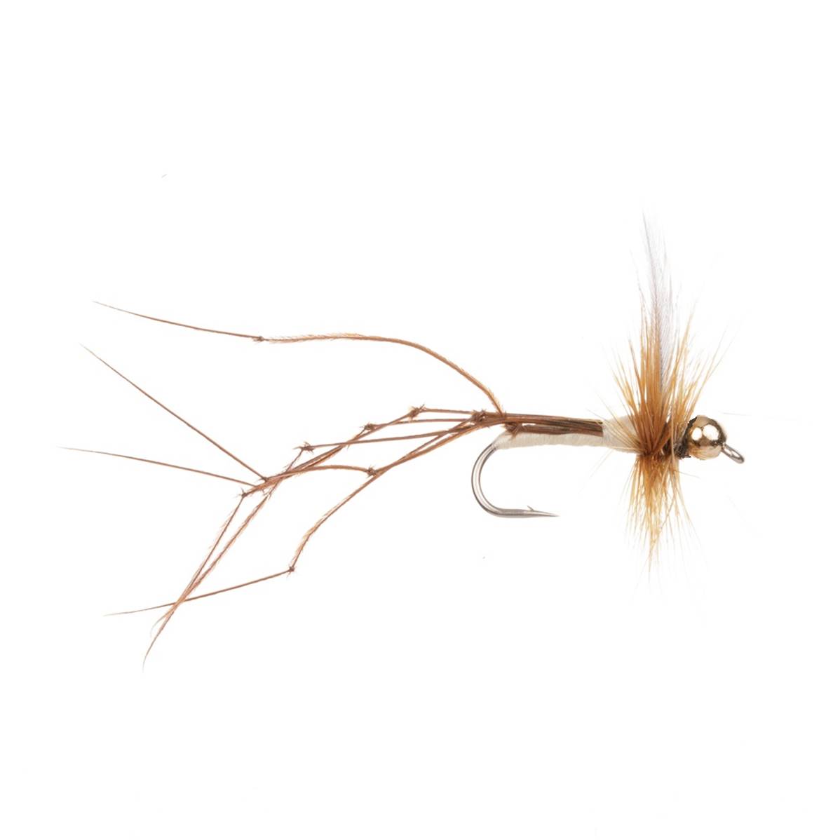 The Gold Headed Daddy Long Legs fly is designed to mimic the crane fly, particularly during its terrestrial adult stage. This fly is especially effective in late summer and early autumn when crane flies are abundant. As these insects often fall into the water, they become an easy target for trout. The fly's gold bead head adds weight, allowing it to sink slightly below the surface, mimicking a struggling or drowning insect.