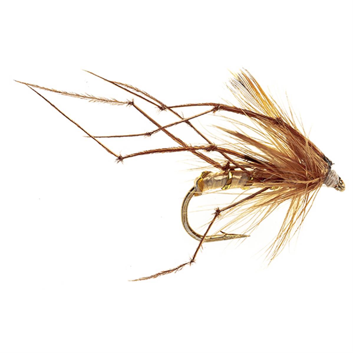 The Daddy Long Legs fly imitates the crane fly, particularly during its adult stage when it is most vulnerable. This fly is designed to mimic the long, slender legs and delicate body of the crane fly, which often falls onto the water's surface. During late summer and early autumn, crane flies emerge in large numbers, making them a significant food source for fish. Fish target these insects because they are easy prey, struggling on the water's surface, providing an irresistible meal. The Daddy Long Legs fly effectively captures this stage, enticing fish with its realistic movement and appearance.