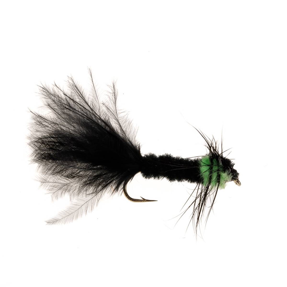 The Marabou Tail Green Montana Trout Fly is a classic pattern renowned for its effectiveness in enticing trout. Originating in the 20th century, this fly has become a staple in anglers' boxes due to its proven success. The vibrant green body, coupled with a soft marabou tail, mimics aquatic insects, making it irresistible to fish. Its weighted head ensures it sinks quickly, reaching the desired depth with ease.