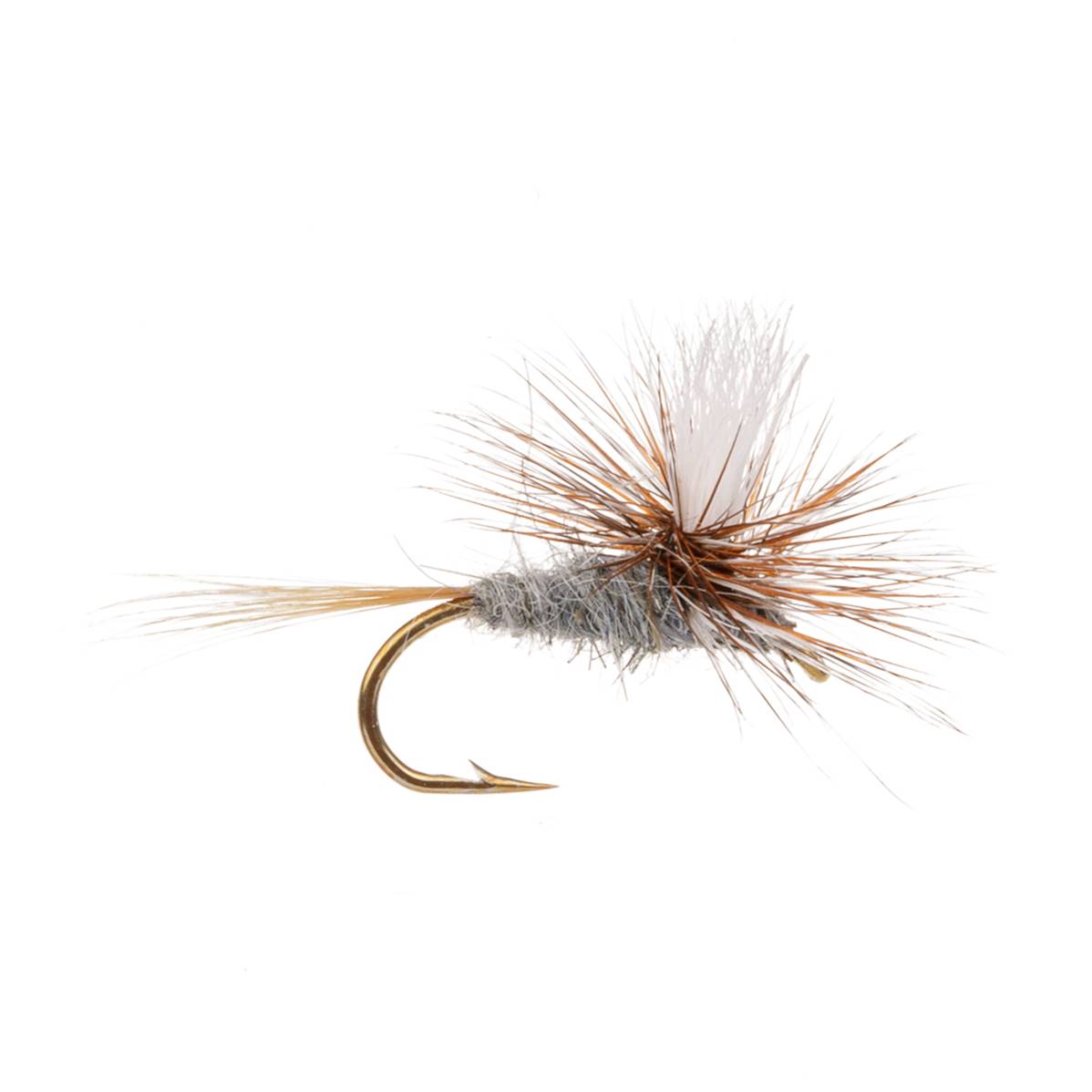 Key features include a grey body, white post for visibility, and grizzly and brown hackle, making it ideal for clear waters. Its effectiveness in various conditions makes it a staple in any angler's fly box..