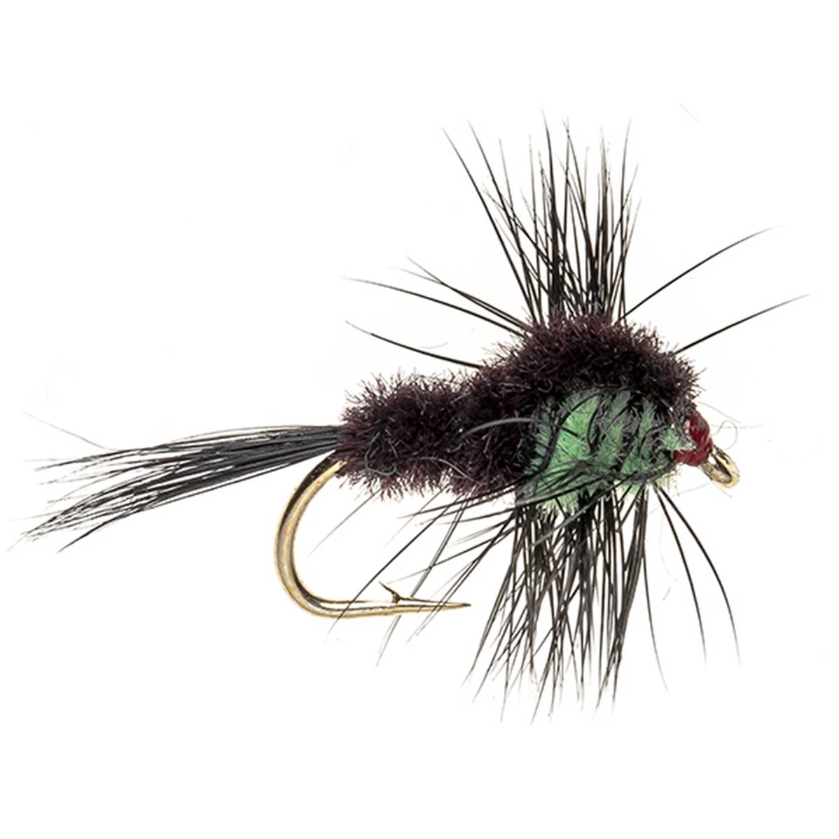Trout target these nymphs due to their abundance and high nutritional value. The fly's green hue and compact size closely resemble the natural appearance of these insects, making it an irresistible target for hungry trout seeking an easy meal.